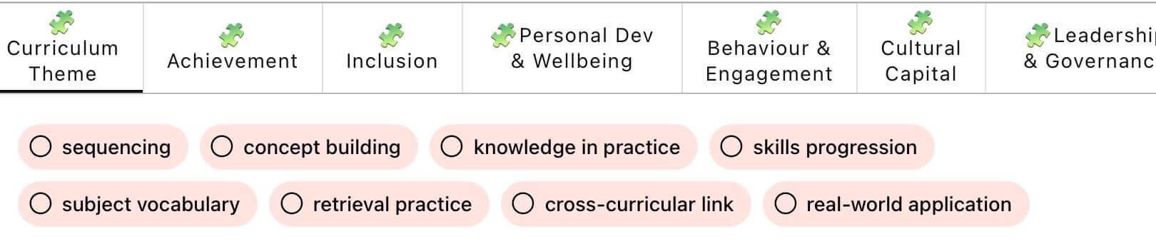 Here’s how the new Blippit Boards tag categories connect with the areas explored in Ofsted’s 2025 framework. NB: Safeguarding is out of scope for privacy.