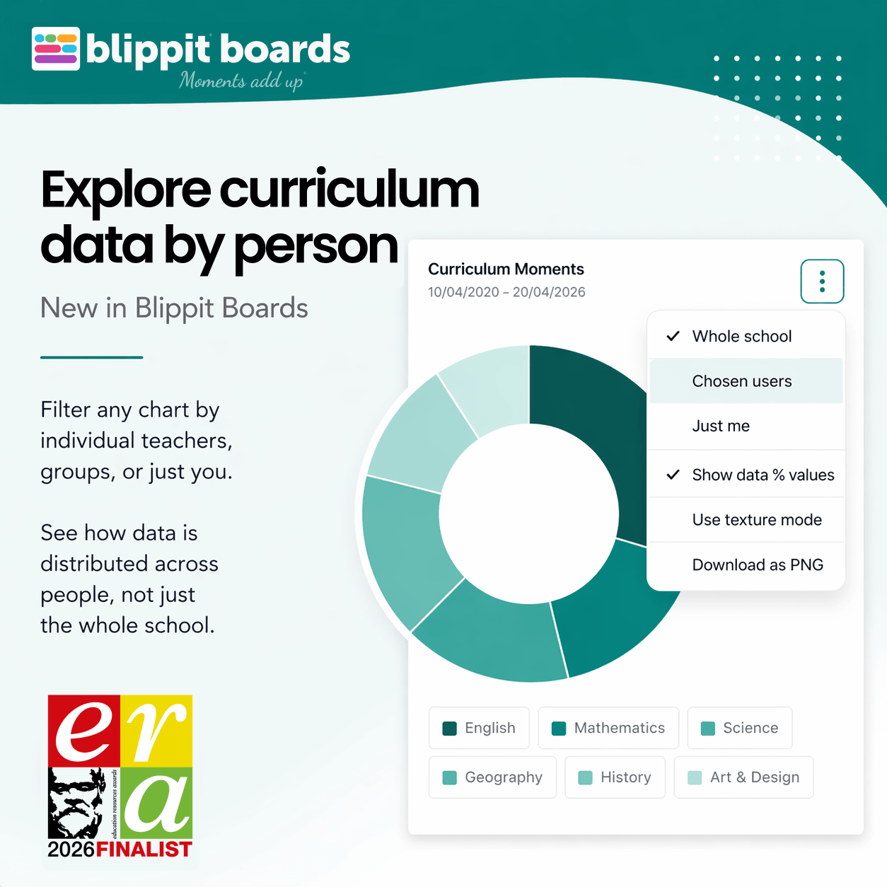 Until now, charts in Blippit Boards have shown whole-school, key stage, or year group data.