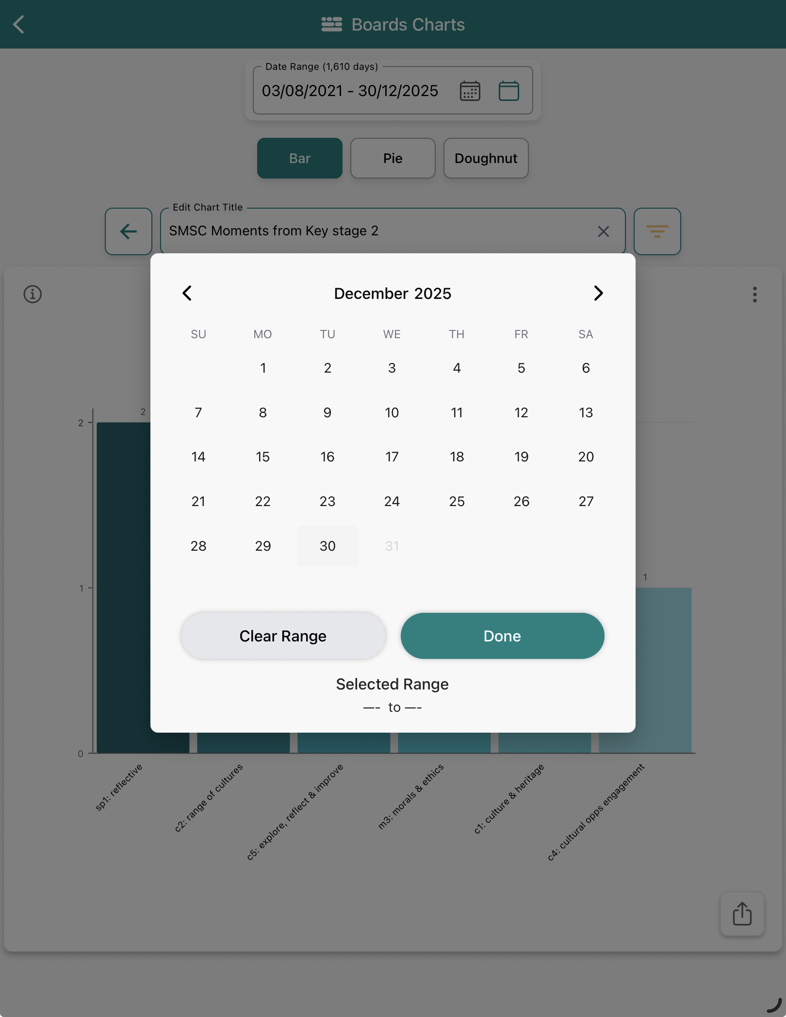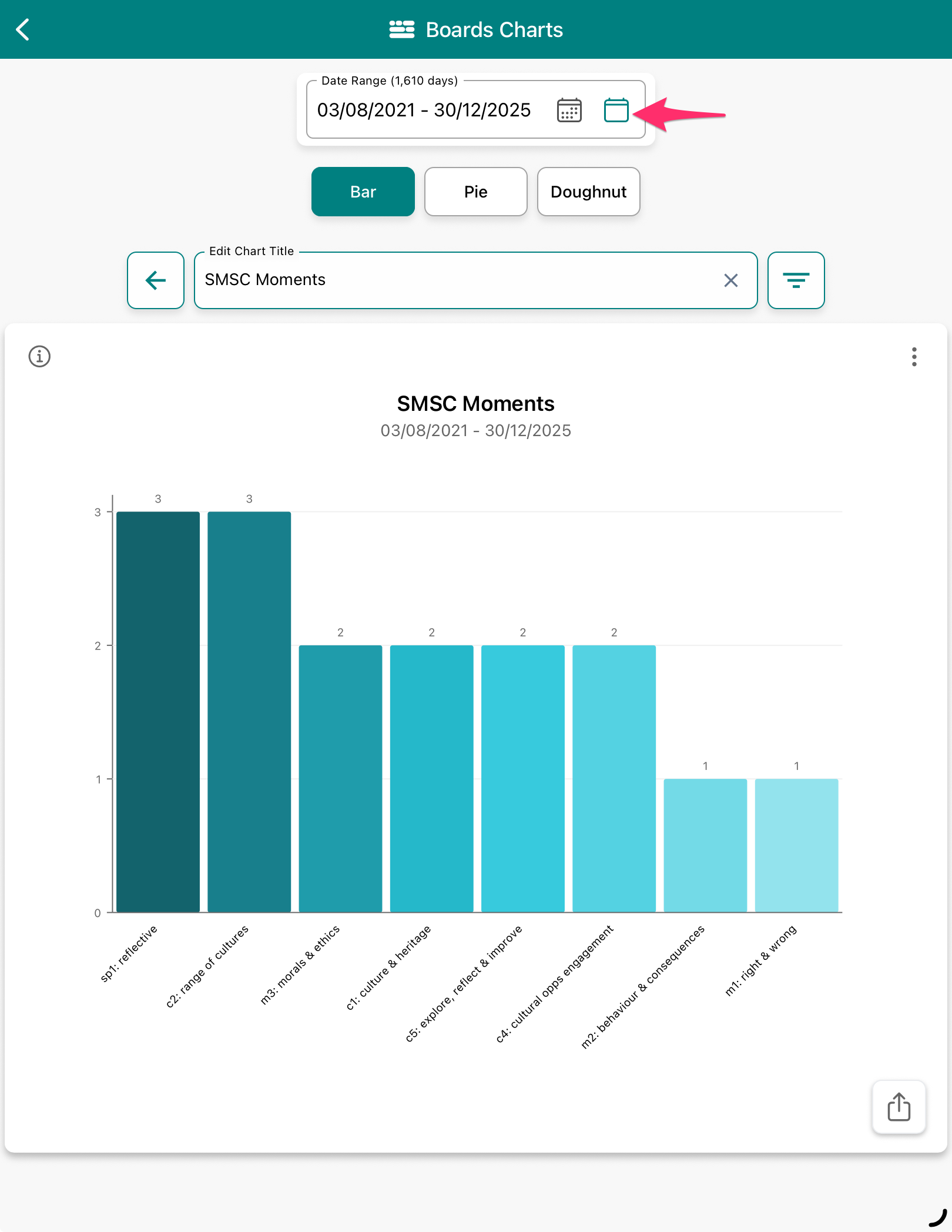 Tap the icon indicated above to reset the date range and ensure your chart is built on all moments shared