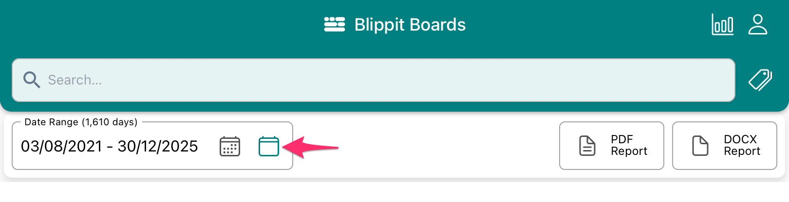 Tap the icon indicated above to reset the date and ensure you can see all the boards shared